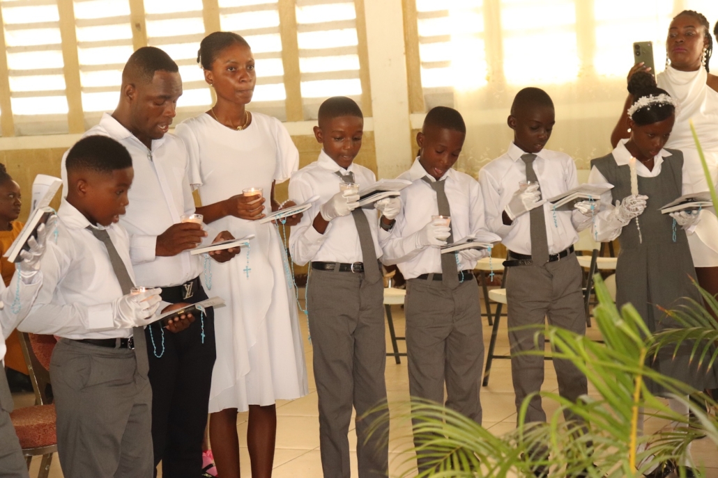 Toute cette belle récolte eucharistique n’aurait pas été possible sans le travail patient et inspiré de l’équipe de formation : le P. Jacques Charles, l’ab. Joe Gaëtan, l’ab. Wiselet et Mme Cétoute. Leur accompagnement, leur témoignage, leur présence attentive ont fait germer la foi dans ces jeunes cœurs. Merci pour votre zèle apostolique !